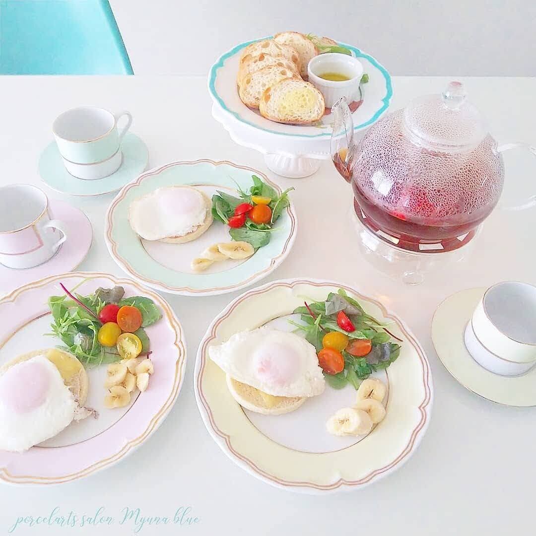 朝食プレート3枚セット(ピンク・ブルー・イエロー)